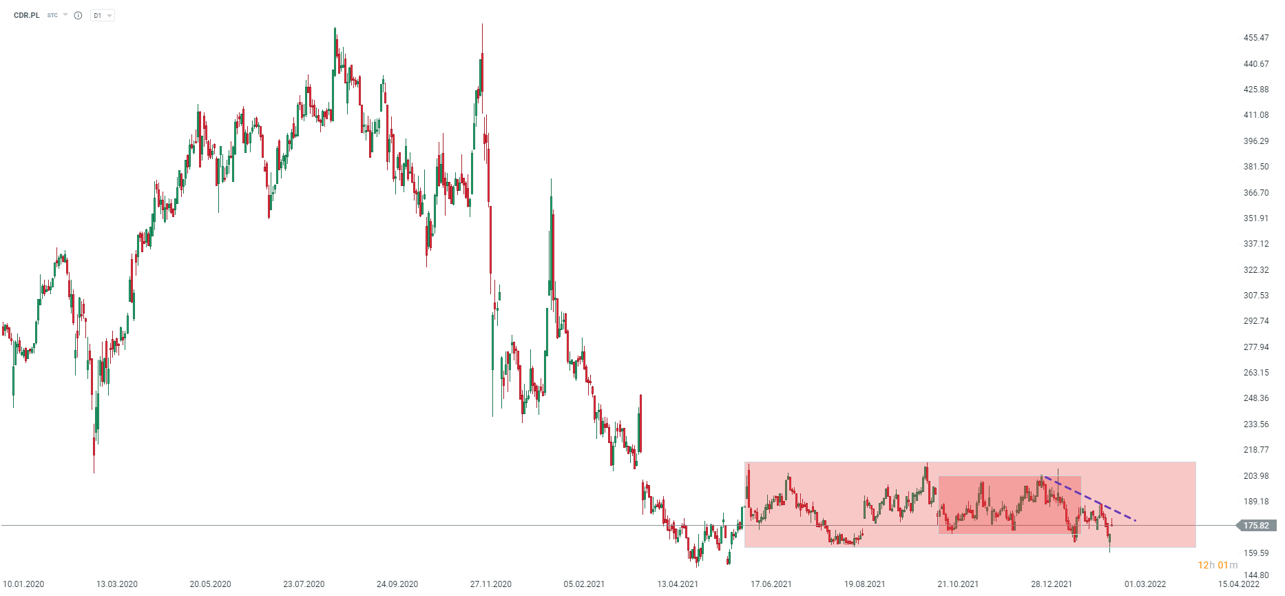 CD Projekt zyskuje, choć pozostaje w wąskim zakresie handlowym. Źródło: xStation5