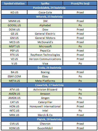 Sezon wyników na Wall Street wchodzi w swoją najciekawszą fazę, która jest naznaczona największą ilością publikacji z dużych spółek amerykańskich. Wśród tych zaplanowanych na ten tydzień można znaleźć raporty od 4 amerykańskich mega-techów oraz 14 członków indeksu Dow Jones.