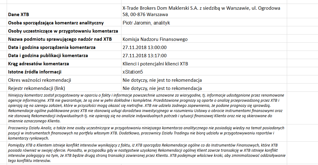 Ta publikacja handlowa jest informacyjna i edukacyjna. Nie jest rekomendacją inwestycyjną ani informacją rekomendującą lub sugerującą strategię inwestycyjną. W materiale nie sugerujemy żadnej strategii inwestycyjnej ani nie świadczymy usługi doradztwa inwestycyjnego. Materiał nie uwzględnia indywidualnej sytuacji finansowej, potrzeb i celów inwestycyjnych klienta. Nie jest też ofertą sprzedaży ani subskrypcji. Nie jest zaproszeniem do nabycia, reklamą ani promocją jakichkolwiek instrumentów finansowych. Publikację handlową przygotowaliśmy starannie i obiektywnie. Przedstawiamy stan faktyczny znany autorom w chwili tworzenia dokumentu. Nie umieszczamy w nim żadnych elementów oceniających. Informacje i badania oparte na historycznych danych lub wynikach oraz prognozy nie stanowią pewnego wskaźnika na przyszłość. Nie odpowiadamy za Twoje działania lub zaniechania, zwłaszcza za to, że zdecydujesz się nabyć lub zbyć instrumenty finansowe na podstawie informacji z tej publikacji handlowej. Nie odpowiadamy też za szkody, które mogą wynikać z bezpośredniego czy też pośredniego wykorzystania tych informacji. Inwestowanie jest ryzykowne. Inwestuj odpowiedzialnie.