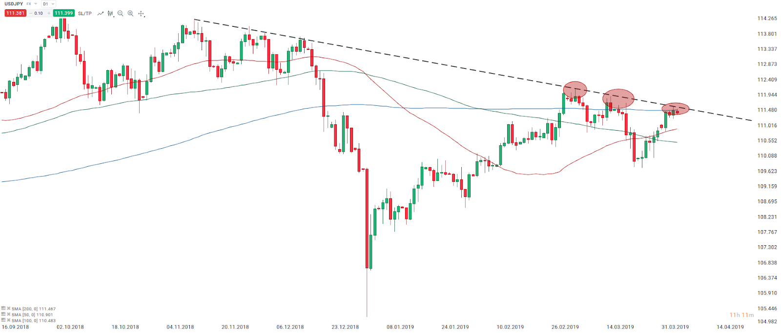 - USDJPY ponownie pod spadkową linią trendu