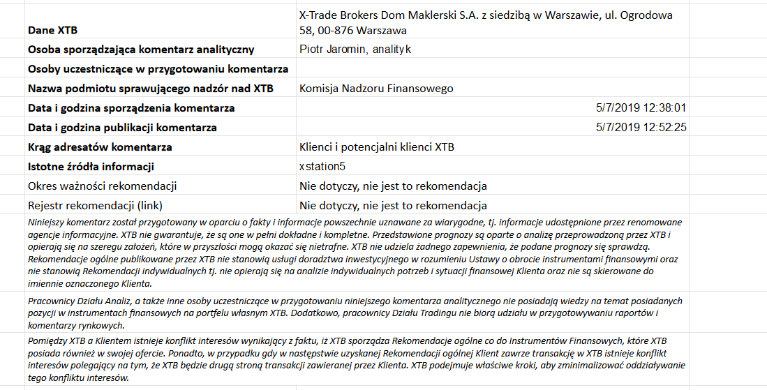 Ta publikacja handlowa jest informacyjna i edukacyjna. Nie jest rekomendacją inwestycyjną ani informacją rekomendującą lub sugerującą strategię inwestycyjną. W materiale nie sugerujemy żadnej strategii inwestycyjnej ani nie świadczymy usługi doradztwa inwestycyjnego. Materiał nie uwzględnia indywidualnej sytuacji finansowej, potrzeb i celów inwestycyjnych klienta. Nie jest też ofertą sprzedaży ani subskrypcji. Nie jest zaproszeniem do nabycia, reklamą ani promocją jakichkolwiek instrumentów finansowych. Publikację handlową przygotowaliśmy starannie i obiektywnie. Przedstawiamy stan faktyczny znany autorom w chwili tworzenia dokumentu. Nie umieszczamy w nim żadnych elementów oceniających. Informacje i badania oparte na historycznych danych lub wynikach oraz prognozy nie stanowią pewnego wskaźnika na przyszłość. Nie odpowiadamy za Twoje działania lub zaniechania, zwłaszcza za to, że zdecydujesz się nabyć lub zbyć instrumenty finansowe na podstawie informacji z tej publikacji handlowej. Nie odpowiadamy też za szkody, które mogą wynikać z bezpośredniego czy też pośredniego wykorzystania tych informacji. Inwestowanie jest ryzykowne. Inwestuj odpowiedzialnie.