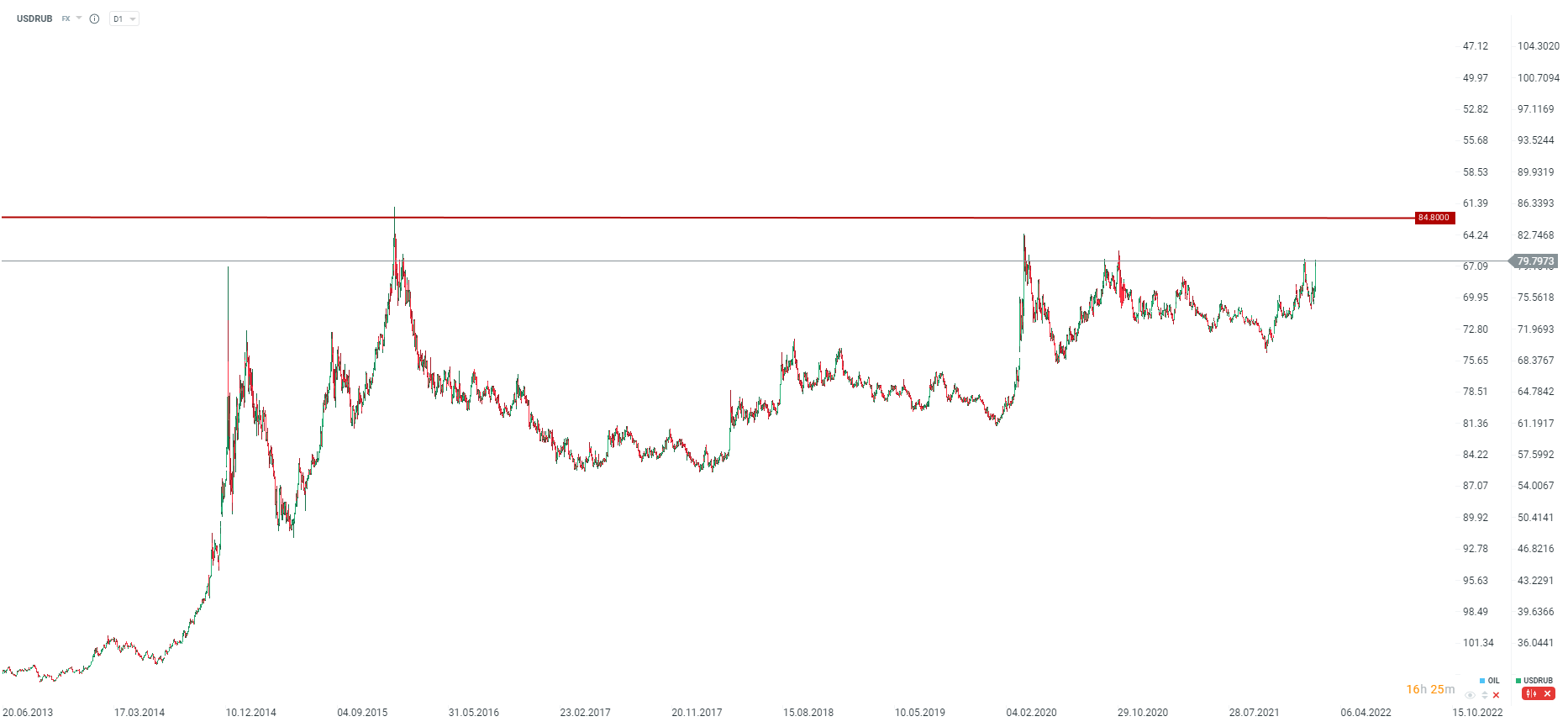 USDRUB notowany jest już przy lokalnych szczytach z końca stycznia. Goldman Sachs zakłada potencjalne 10% osłabienie rubla w przypadku dalszej eskalacji konfliktu. Oznaczałoby to wzrost w okolice poziomu 84,8 do okolic historycznych szczytów z 2016 roku. Wtedy na słabość rubla nałożyły się dwa silne czynniki: spadek cen ropy naftowej oraz sankcje. Jeśli sankcje zaczną dotyczyć rozliczeń dolarowych czy eksportu, można oczekiwać, że reakcje rynkowe mogą być jeszcze silniejsze. Źródło: xStation5
