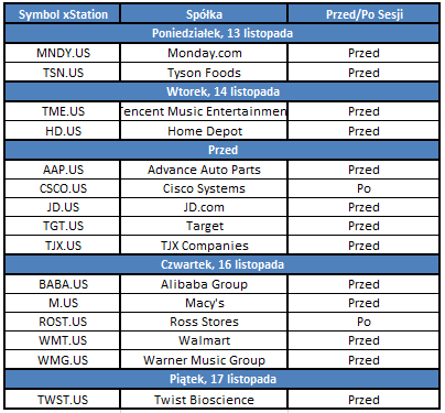 Sezon wyników na Wall Street powoli dobiega końca, a większość amerykańskich spółek o dużej kapitalizacji podała już swoje dane finansowe za III kwartał 2023 roku. Chociaż w tym tygodniu ponad 1000 amerykańskich spółek ma opublikować wyniki za trzeci kwartał, są to głównie mniejsze, mniej znane firmy. Niemniej jednak inwestorzy otrzymają w tym tygodniu również raporty od niektórych większych spółek. Wśród nich można znaleźć Home Depot (wtorek), Target (środa) czy Walmart (czwartek). Poniżej znajduje się harmonogram kluczowych publikacji wyników na Wall Street w tym tygodniu.