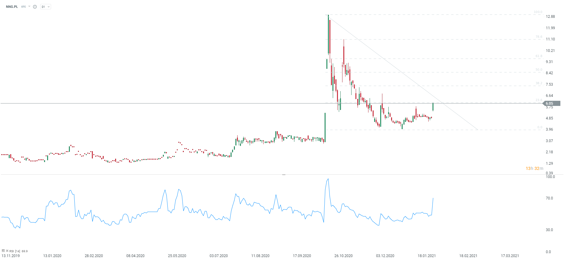 Nanogroup (NNG.PL) jest dzisiaj liderem wzrostów na GPW. Źródło: xStation5