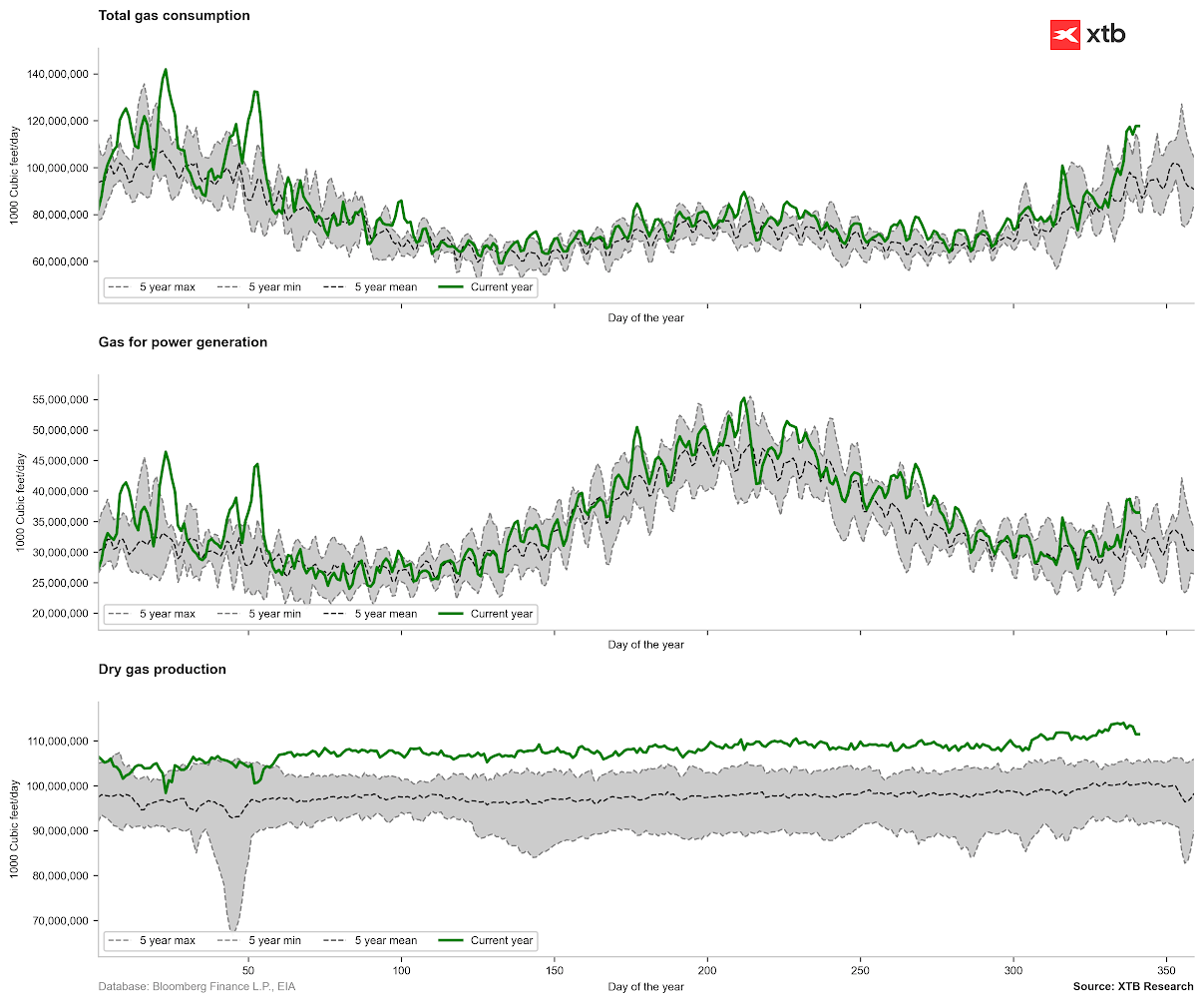Wysokie zużycie gazu w USA. Źródło: Bloomberg Finance LP, XTB
