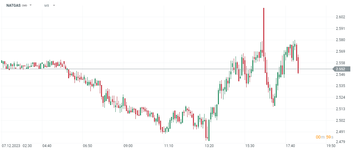 Cena szybko wymazała początkowe wzrosty i obecnie kontrakty na gaz notowane są w okolicach 2,56 USD za MMBtu