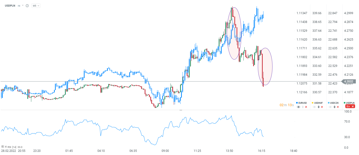 Dolar ponownie przy 4,20 czyli w okolicach wczorajszego otwarcia i dzisiejszej sesji azjatyckiej. Widać, że pierwsza słowna interwencja ze strony Sury zostaje wzmocniona przez oficjalny komunikat NBP: