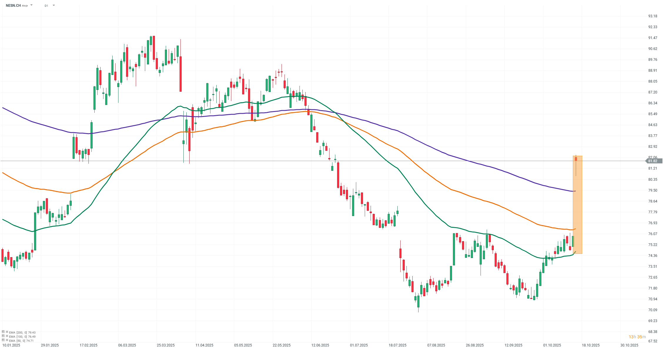 Nestlé opublikowało dane za trzy kwartały 2025 roku, które wskazują na umiarkowany, ale stabilny wzrost. Organiczny wzrost przychodów wyniósł 3,3%, natomiast realny wzrost wewnętrzny (RIG) osiągnął 0,6%. Firma potwierdziła cel utrzymania marży operacyjnej na poziomie co najmniej 16% oraz zapowiedziała szeroko zakrojoną restrukturyzację, która obejmuje planowane zwolnienia sięgające około 16 tysięcy pracowników do końca 2027 roku. Po publikacji wyników kurs akcji wzrósł o około 8%. To największy jednodniowy skok od 17 lat.