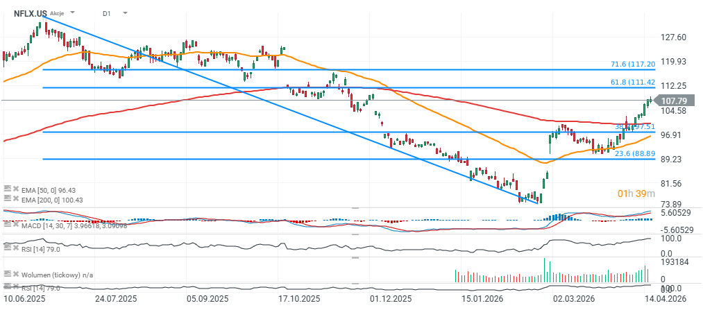 Akcje Netflixa (interwał D1)