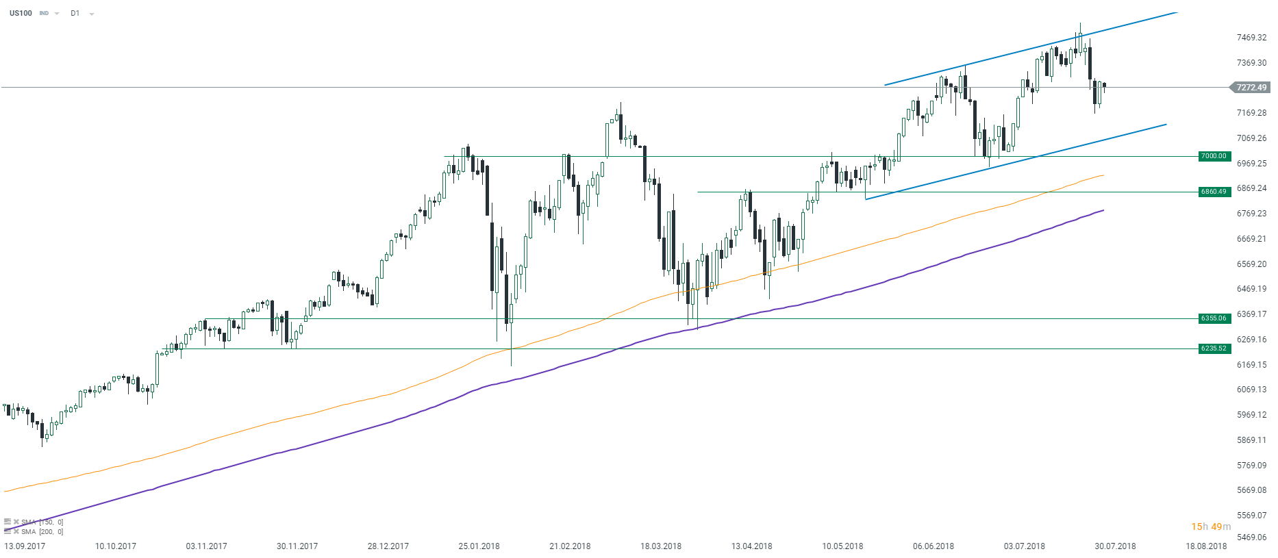 Na koniec wspomnijmy o Apple, który zaprezentował całkiem dobre wyniki za trzeci kwartał fiskalny. EPS wyniósł 2,34 USD, pokonując konsensus na poziomie 2,18 USD, podczas gdy przychody wyniosły 53,3 mld USD (także przekroczyły oczekiwania na poziomie 52,34 mld USD). Z drugiej strony sprzedaż iPhone'a spadła o medianę szacunkową na poziomie 41,79 miliona i wyniosła 41,3 miliona. W wyniku tego raportu akcje spółki rosną o 4% w handlu posesyjnym. W porównaniu z wynikiem z analogicznego okresu w 2017 roku możemy zauważyć, że EPS wzrósł aż o 40%, a przychody o 17%.Te optymistyczne wyniki pojawiły się po zeszłotygodniowym rozczarowaniu i silnych spadkach Facebooka i Twittera.