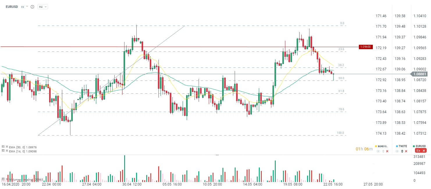 Indeks dotyczący oczekiwań wzrasta do 80,1 punktów przy oczekiwaniu 75,0 oraz przy poprzednim na poziomie 69,4 punktów. Gorzej od oczekiwać oraz od poprzedniego odczytu wypada ocena bieżącej sytuacji. Bieżąca ocena wypada na poziomie 78,9 punktów przy oczekiwaniu 80 punktów oraz przy poprzednim poziomie 79,4 punktów. Widać wobec, że pomimo mniejszego wpływu epidemii w maju w porównaniu do kwietnia, ocena gospodarki wcale nie uległa poprawie. Widać, że przedsiębiorcy dalej czekają na otwieranie gospodarki oraz pomoc ze strony rządu. Z ostatniej chwili pojawiły się informacje, iż niemiecki rząd planuje wesprzeć średnie firmy do 250 pracowników bezpośrednią dopłatą w wysokości 50 tys. euro. Pomoc miałaby być wypłacana od czerwca do grudnia tego roku i firma musi przedstawić dowodu na spadek przychodów rzędu 60% w ujęciu rocznym za kwiecień oraz maj.