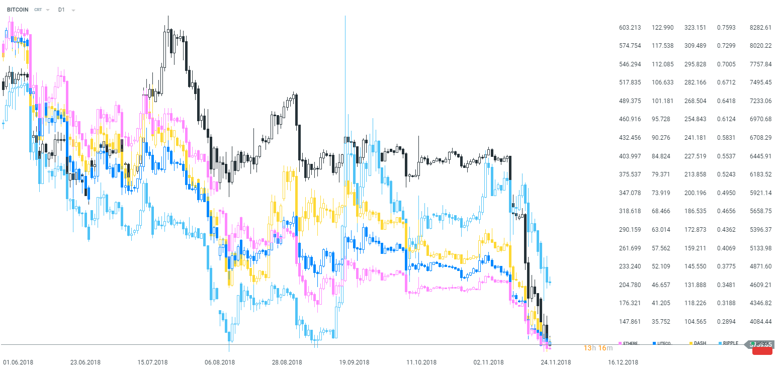 Rynek kryptowalut przyciągnął sporo uwagi w kilku ostatnich dniach, ponieważ doświadczył on silnej presji spadkowej, która strąciła Bitcoina do najniższego poziomu od września 2017 roku. Nie zaobserwowaliśmy do tej pory żadnej korekty w górę, co może sugerować, że niedźwiedzie mogą dominować w najbliższej przyszłości. Uważamy, że na tym etapie zróżnicowanie pomiędzy Bitcoinem (oraz innym kryptowalutami) i technologią blockchain zasługuje na więcej uwagi, ponieważ może mieć to znaczenie w przyszłości.