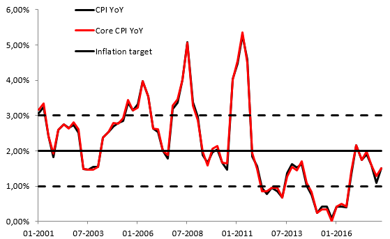 Z drugiej strony zaobserwowaliśmy rozczarowanie pod wzglęem inflacji głównej, gdyż ta wypadła na poziomie 1,5% przy oczekiwaniu na poziomie 1,6% r/r. Poprzedni odczyt wyniósł 1,1% r/r. Rynek jednak nie czuje się rozczarowany, gdyż biorąc pod uwagę światowe trendy, główne ceny powinny iść dalej w górę, zwracając uwagę na wysokie ceny ropy. Inflacja w drugim kwartale motywowana była głównie poprzez wzrost rent, kosztów budowy, czy cen elektryczności. Ceny żywności oraz transportu również dołożyły swoją cegiełgę do ogólnego wzrostu. Patrząc na szczegóły widać, że wzrost inflacji nie jest związany z jednorazowymi czynnikami.