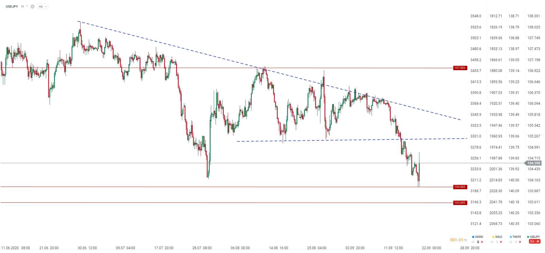 USDJPY wyraźnie odbija od poziomu 104,00. Źródło: xStation5