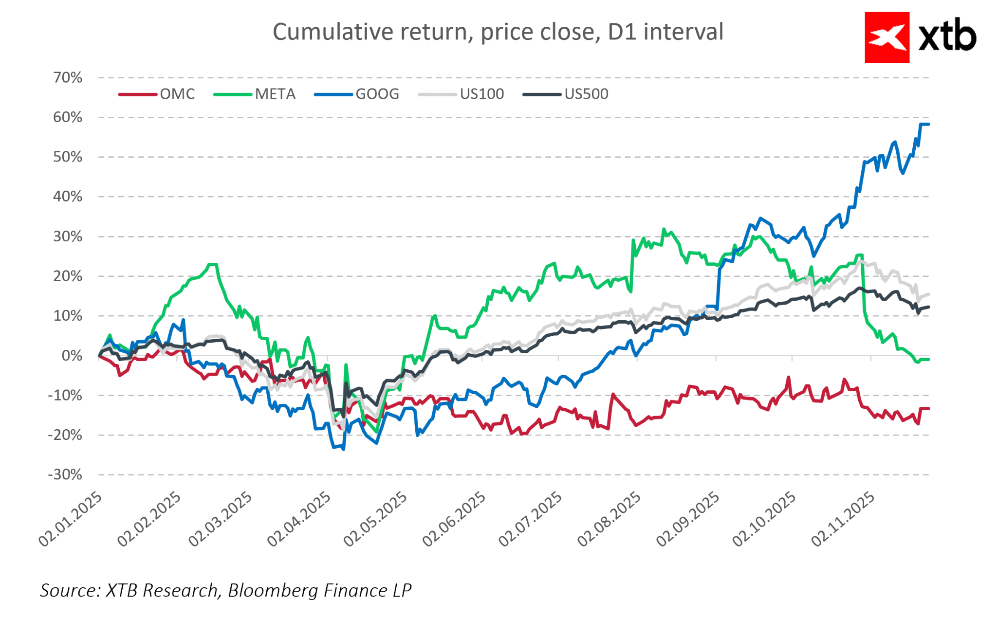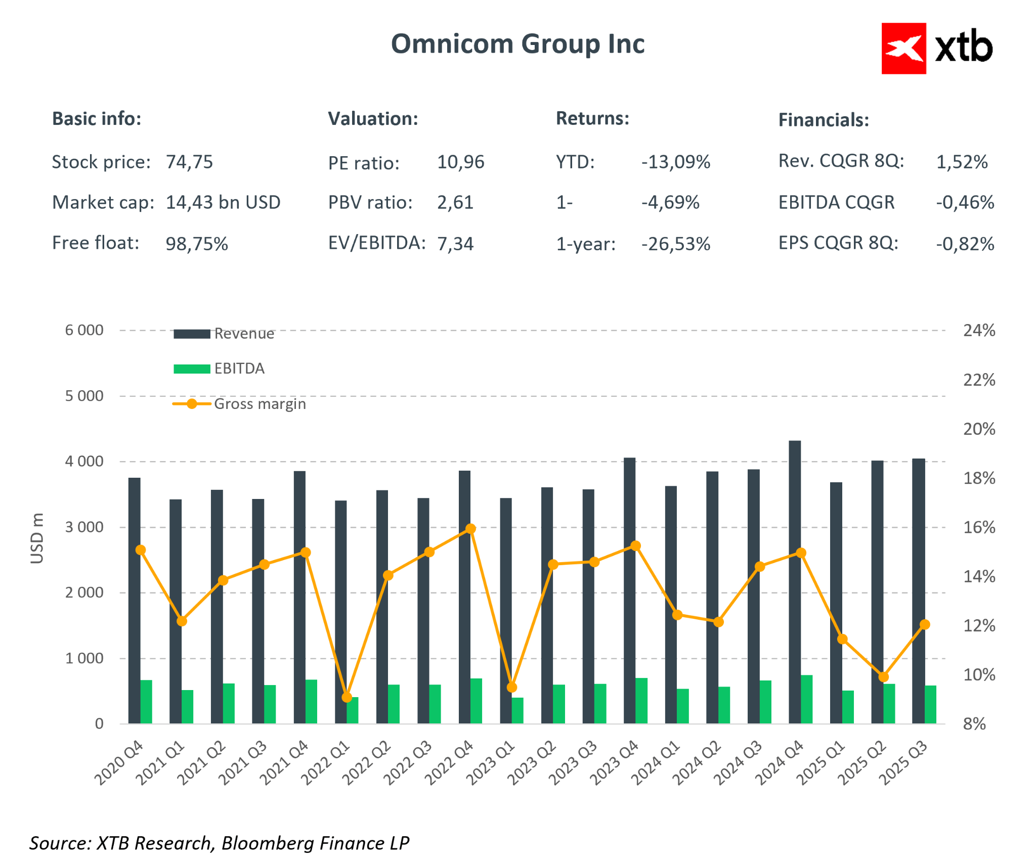 Choć fuzja ma potencjał, aby wzmocnić pozycję rynkową firmy, tegoroczna reakcja rynku przedstawia zupełnie inną perspektywę inwestorów. Kurs akcji Omnicomu pozostaje pod znaczną presją. Od początku roku spółka notuje wyraźny spadek wartości, podczas gdy główne indeksy technologiczne i szerokiego rynku, takie jak Nasdaq100 oraz SP500, osiągają solidne, dwucyfrowe stopy zwrotu. Dysproporcja ta po raz kolejny podkreśla, że tradycyjne firmy reklamowe wciąż przegrywają rywalizację o kapitał inwestorów z dużymi firmami technologicznymi, które dzięki dominującej pozycji w reklamie cyfrowej oraz szybkim postępom w sztucznej inteligencji przyciągają znaczną część napływających środków.