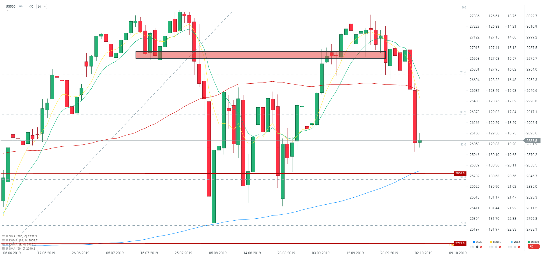 Tymczasem na Wall Street widać próbę odbicia. Niemniej sesja nie zaczęła się jakoś spektakularnie i widać próbę ograniczania wcześniejszych wzrostów. Źródło: xStation5