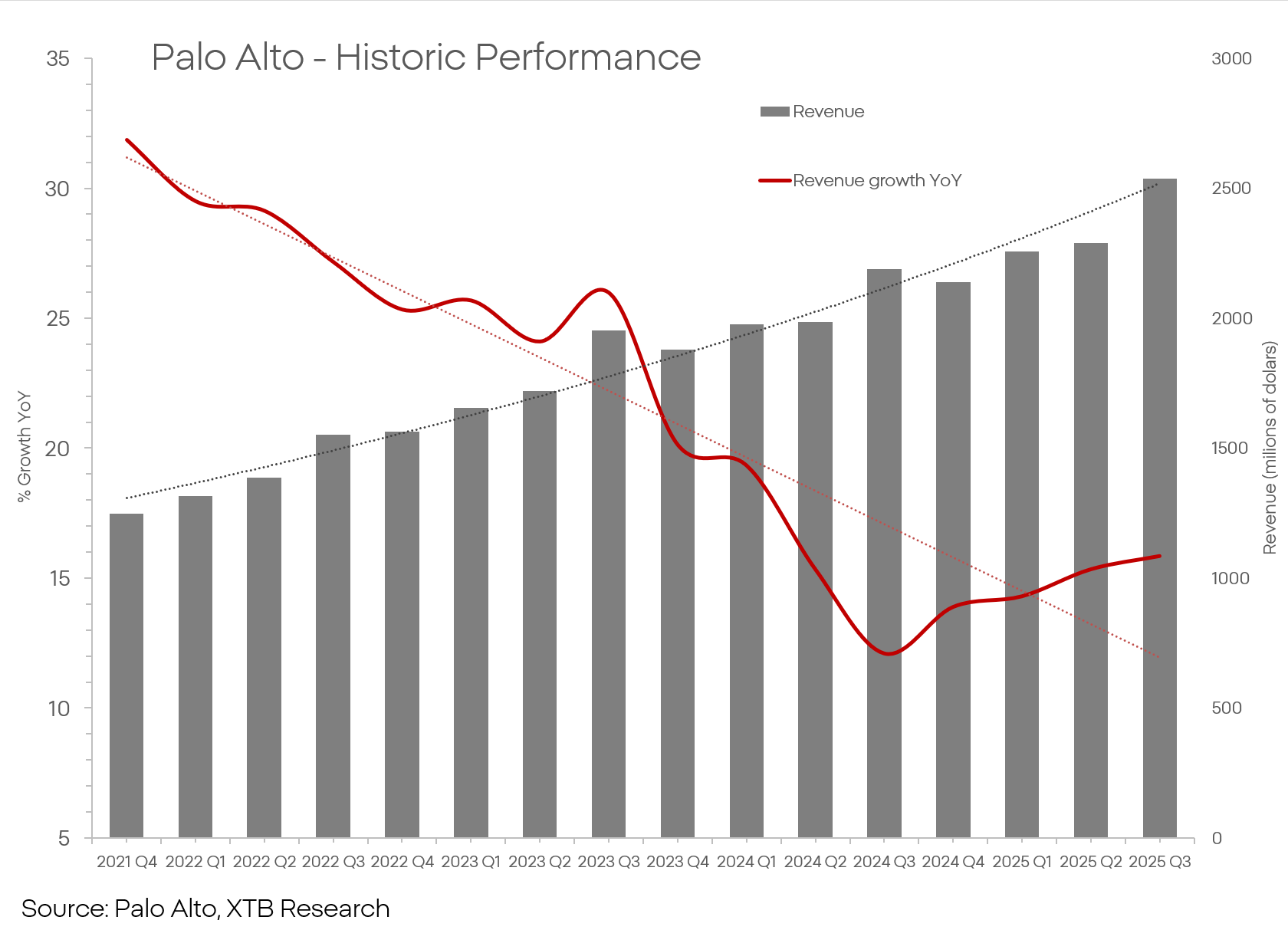 Przede wszystkim przemawiają tu nie liczby a trendy — konkretnie jego nachylenie. Mowa tu o tempie wzrostów które, mimo że jest imponujące to przy zestawieniu danych historycznych — spada. Wzrost jest w dalszym ciągu niezwykle imponujący, ale przy wskaźniku P/E sięgającym ponad 140 - imponujący to za mało.