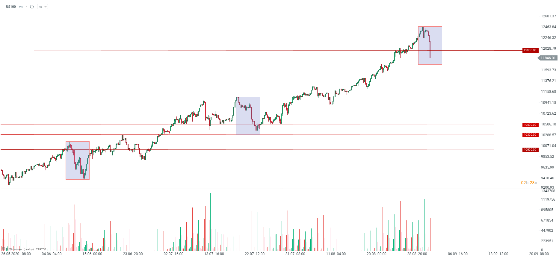 Obecnie obserwujemy paniczną wyprzedaż akcji na Wall Street. Nasdaq traci ponad 4,5%, znajdując się wyraźnie poniżej 12 tys. punktów, natomiast S&P 500 traci ponad 3%. Wyprzedaż powiązana jest z niepewnością dotyczącą spółek technologicznych. Jedną z najbardziej tracących spółek jest Tesla, która zniżkuje ponad 6%.