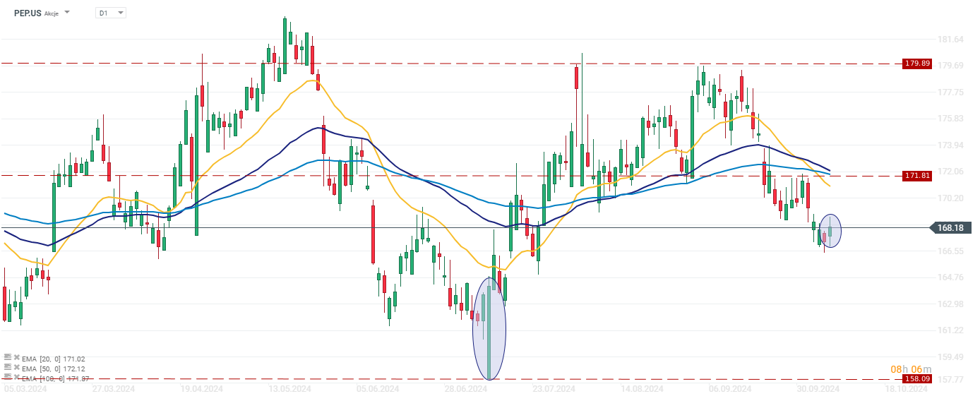 PepsiCo (PEP.US) notuje dziś lekkie wzrosty po publikacji wynikó za 3Q24. Spółka osiągnęła wyniki w większości zgodne z oczekiwaniami, jednak lekko obniżyła swoje prognozy dotyczące przychodów ze względu na wycofanie niektórych produktów w segmencie Quaker Food oraz bojkoty produktów spółki na Bliskim Wschodzie.