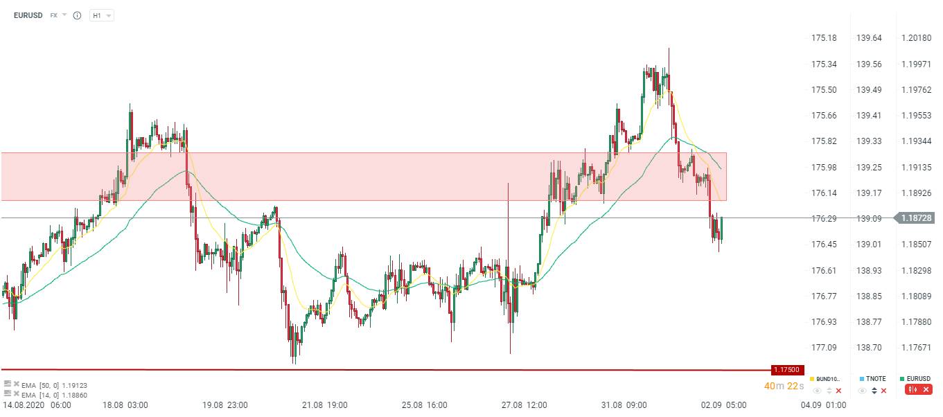 EURUSD próbuje odrabiać straty po sporym rozczarowaniu raportem ADP. Źródło: xStation5