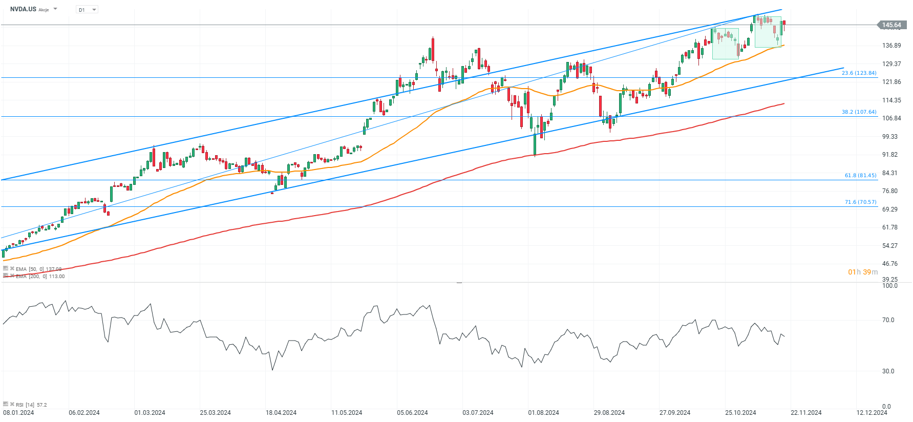 - Raport jest bardzo mocny i sygnalizuje, że boom na sztuczną inteligencję jest prawdopodobnie daleki od zakończenia, pomimo wysokich wycen spółek technologicznych. Nvidia uspokoiła rynek w kwestii pierwszych dostaw chipów Blackwell, choć zaznaczyła, że rzeczywiście istnieją pewne ograniczenia w ich produkcji. Z drugiej strony ograniczenia te, przy wysokim popycie dają firmie perspektywę stabilniejszej siły cenowej.