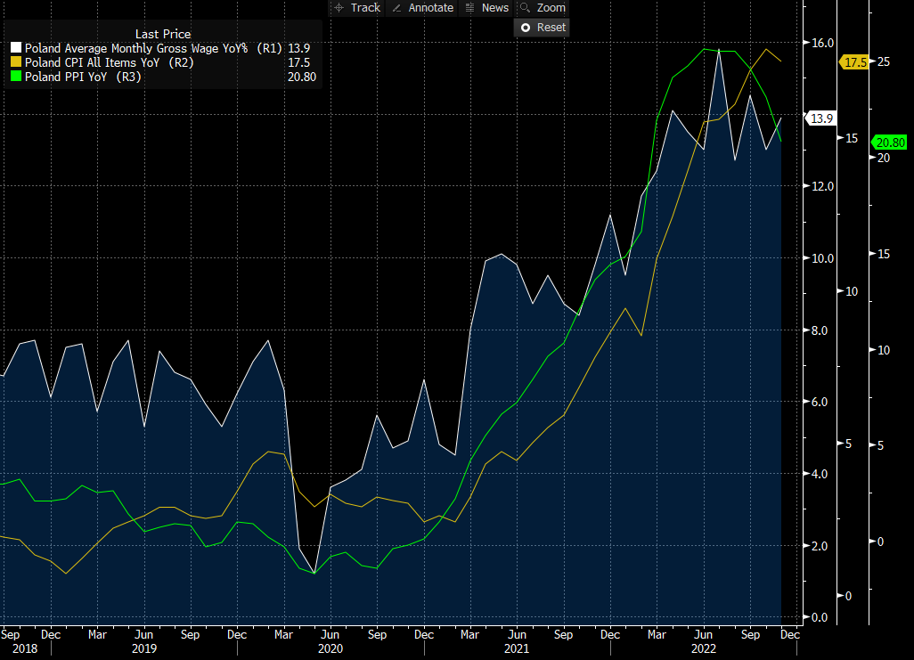 Płace: 13,9% r/r (oczekiwano: 13,1% r/r; poprzednio: 13,0% r/r)