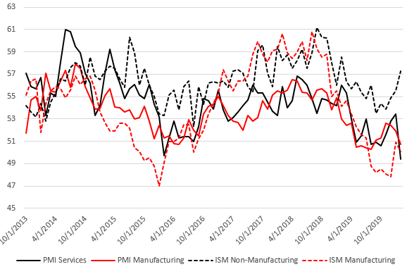 Bardzo dobry odczyt usługowergo ISM, który komletnie rozmija się z pozostałymi indeksami. W szczególności ze strony PMI dla sektora usług. Źródło: Macrobond, XTB