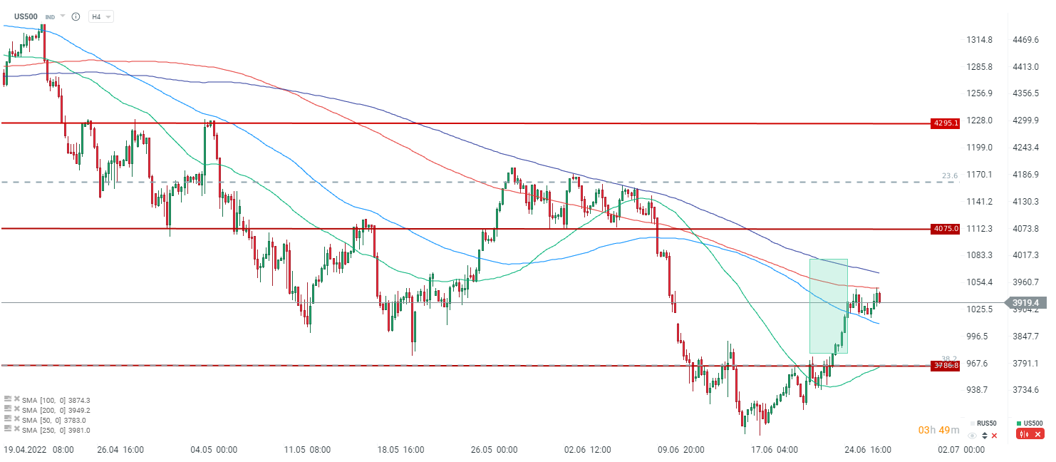 S&P 500 nieco cofa się po negatywnych odczytach. Źródło: xStation5