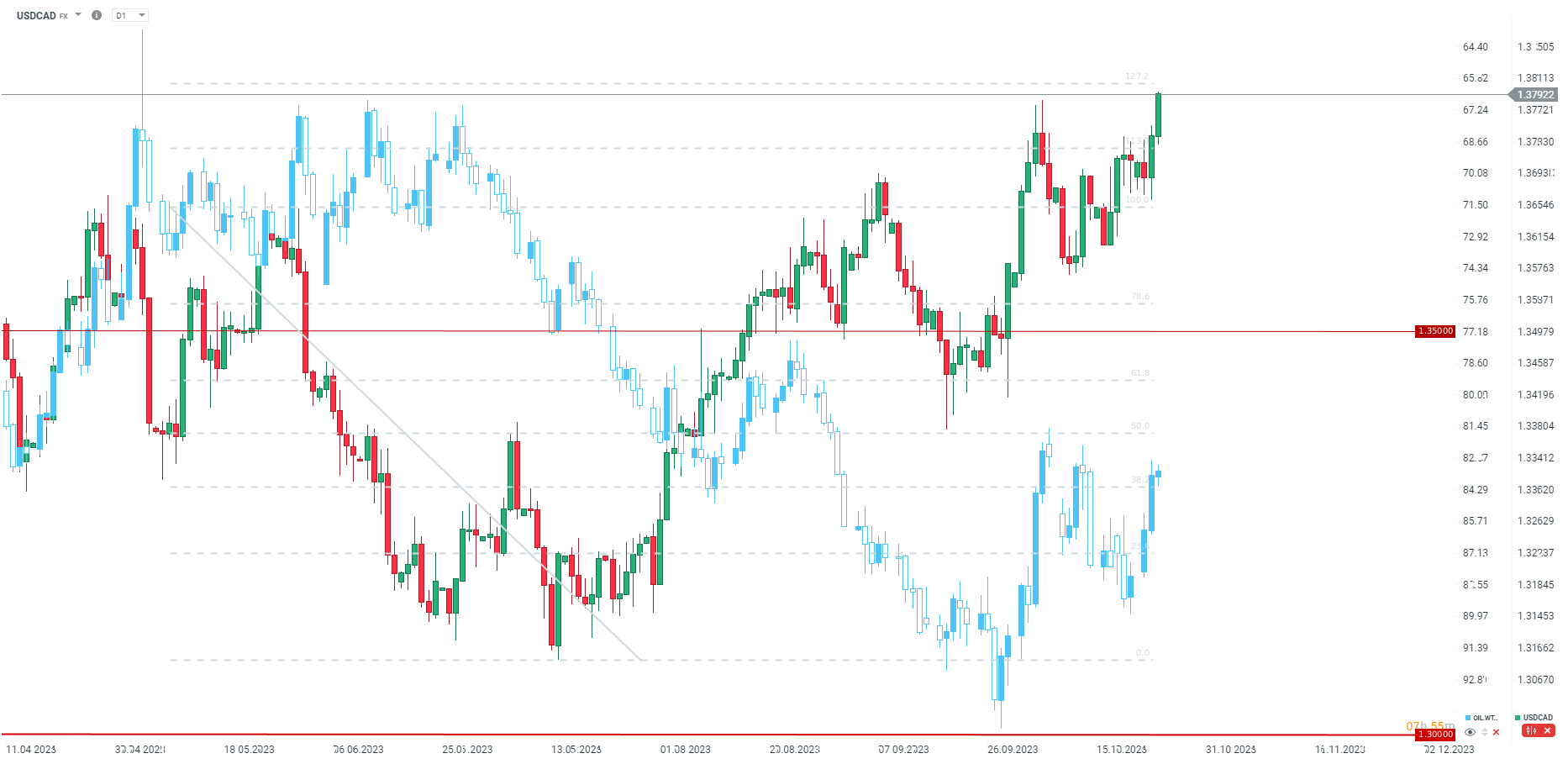 USDCAD pozostaje w fazie wzrostowej. Źródło: xStation5