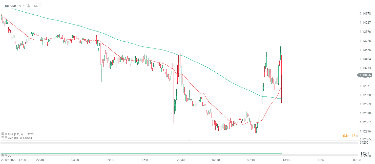 GBPUSD spadł wyraźnie po decyzji, głównie ze względu na rozczarowanie, że nie jest to 75 pb. Źródło: xStation5