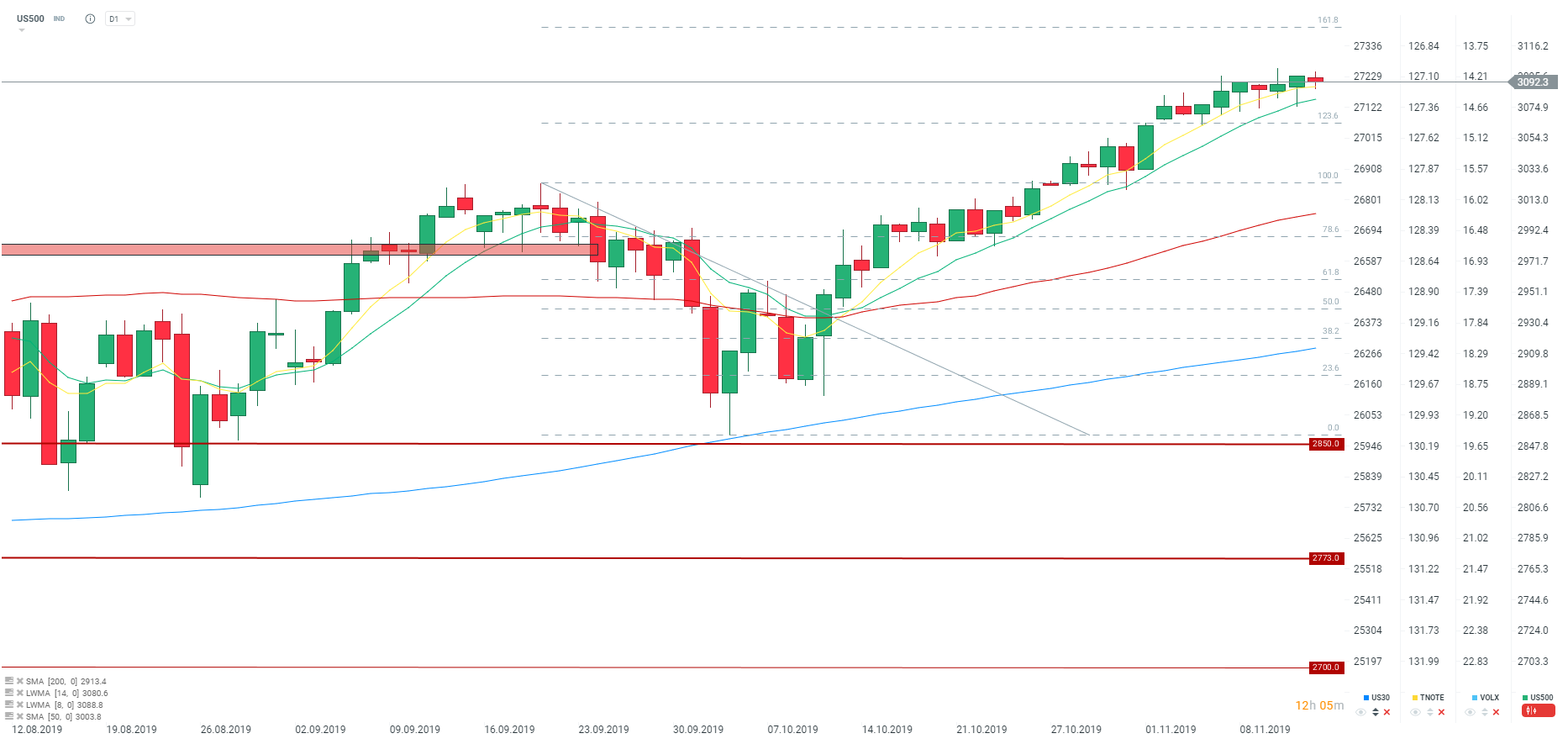 Kolejne informacje dotyczące kwestii handlowych, które płyną dzisiaj z Chin. Państwo to oficjalnie znosi ban na import amerykańskiej wieprzowiny, co miało być przyjaznym gestem w trakcie toczących się rozmów pomiędzy dwoma krajami. Nie jest to oczywiście informacja, która zmienia cały tok wydarzeń, ale z pewnością może być traktowana pozytywnie. Kontrakty na Wall Street zachowują się minimalnie lepiej.