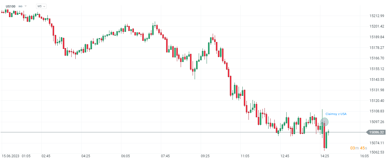 Zarówno liczba nowych wniosków dla bezrobotnych jak i wniosków kontynuowanych w USA okazała się wyższa od oczekiwań Wall Street. W pierwszej reakcji indeks US100 stracił.