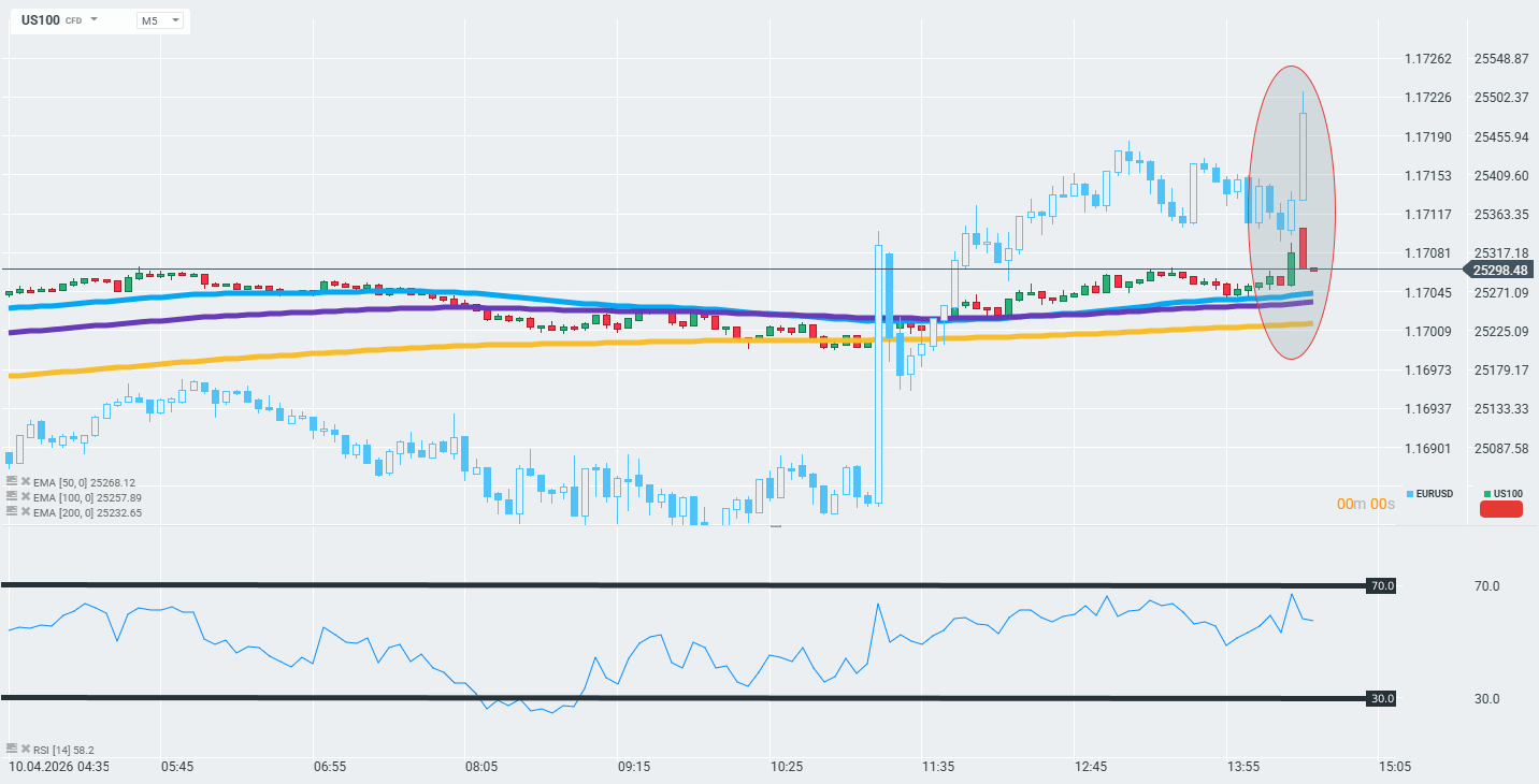 US100 zyskuje na wartości po danych; dolar amerykański w tym samym czasie cofa.