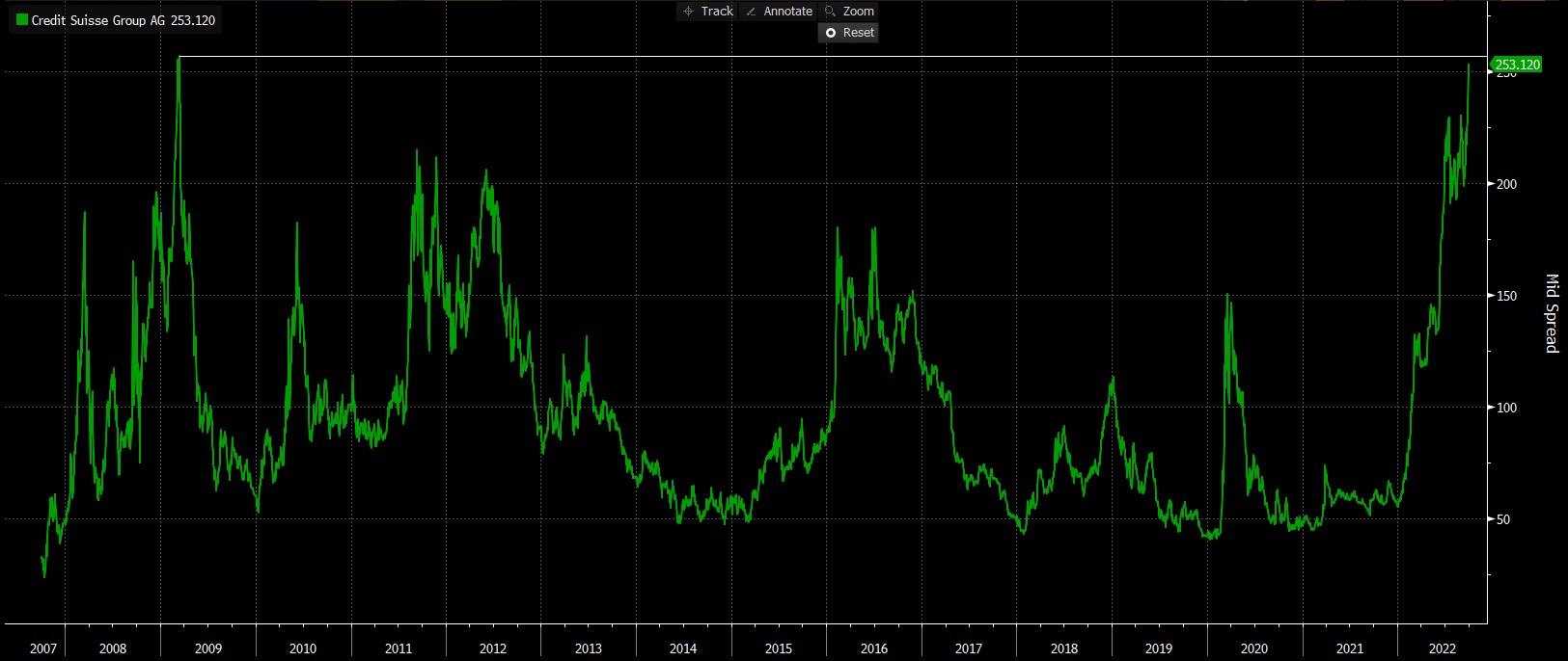 Credit Suisse CDS Spread. Źródło: Bloomberg