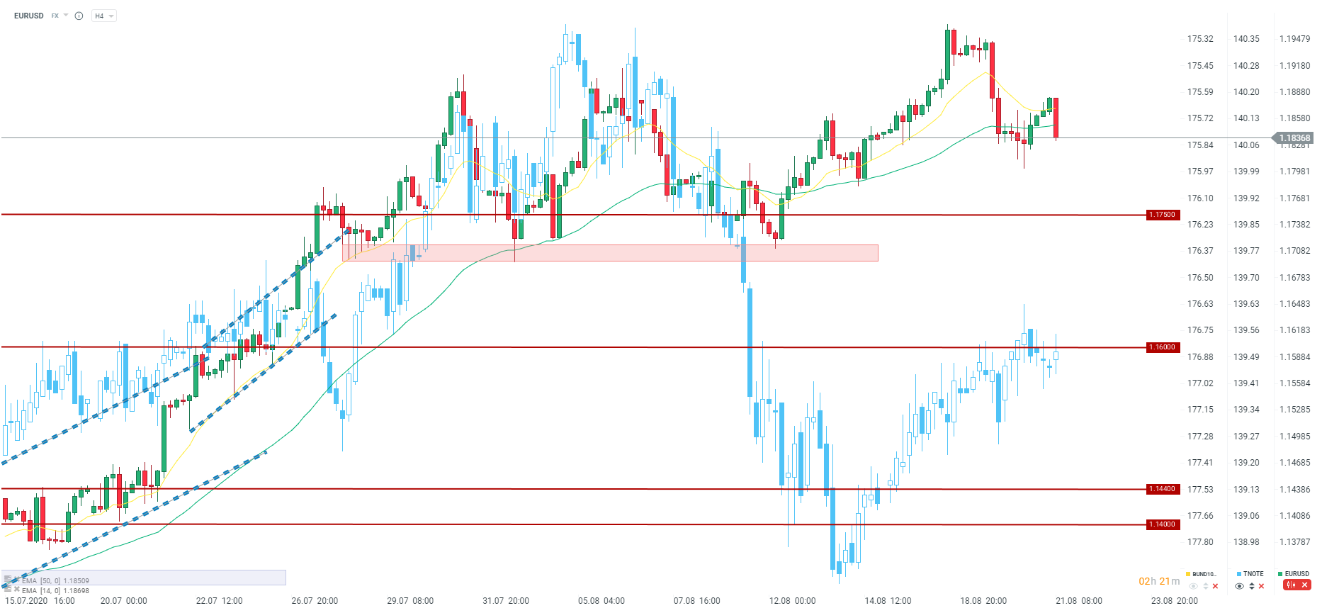 EURUSD wyraźnie w dół po publikacji danych. Źródło: xStation5