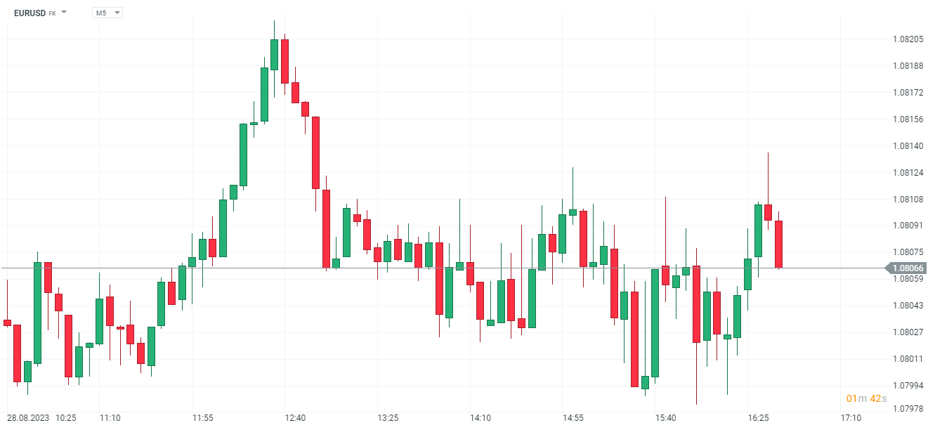EURUSD redukuje początkową zwyżkę po publikacji i notowane jest przy 1,08066