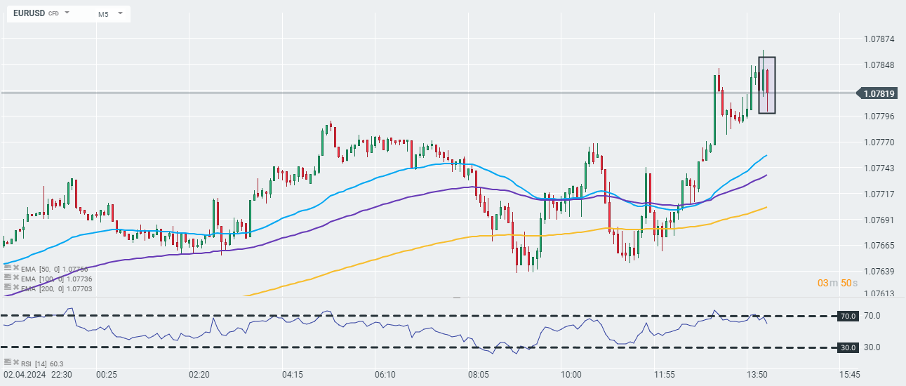 Para EURUSD straciła na krótko po odczycie danych. Źródło: xStation