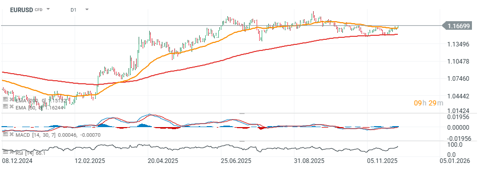 Według komentarza szefowej agencji, spadek spowodowany był głównie redukcją etatów w mniejszych, amerykańskich firmach. Otoczenie makro pozostaje niepewne, a kondycja konsumenta osłabiona. Para EURUSD zyskała wobec słabszego dolara, po niższych od prognoz i 'gołębich' danych z amerykańskiego rynku pracy; kurs zbliża się już do 1.168. Obniżka stóp w grudniu wydaje się niemal pewna.
