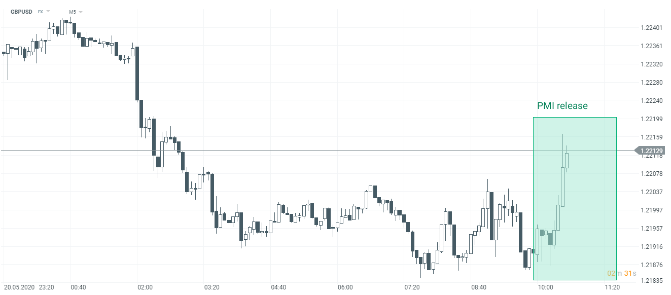 Przed chwilą poznaliśmy kolejne wstępne odczyty PMI, tym razem z Wielkiej Brytanii. Podobnie jak w przypadku danych z Niemiec i Francji, odczyt pozostawia wiele do życzenia i nadal wskazuje na bardzo głęboką recesję brytyjskiej gospodarki. Mimo wszystko, wynik jest nieco lepszy niż prognozy. Oczekiwania wskazywały, iż wskaźnik dla usług wyniesie 25 pkt, a wskaźnik dla przemysłu: 36 pkt. Opublikowane przed chwilą rezultaty wyglądają następująco: