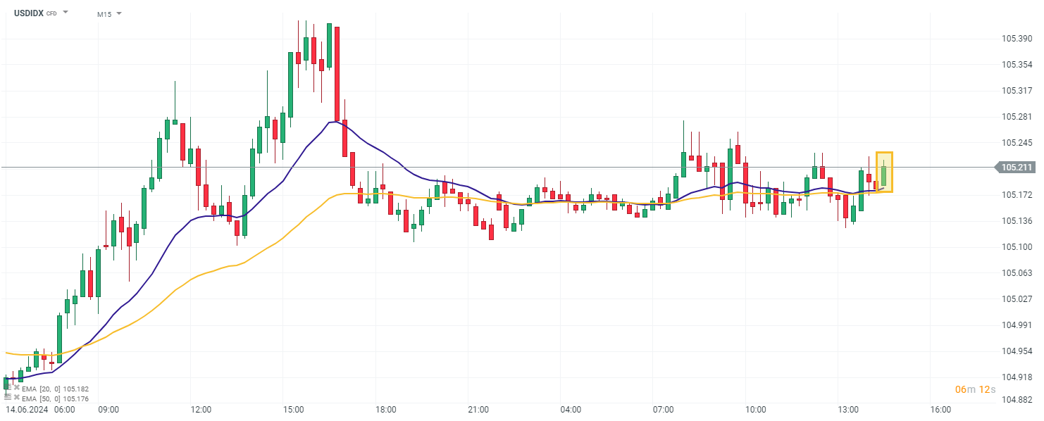 W czerwcu prognozowano poprawę indeksu z wartości -15,6, natomiast finalne dane okazały się jeszcze lepsze i okazuje się, że indeks przyjął wartość -6,00. W efekcie lekkie umocnienie można zauważyć na dolarze, jednak nie jest to bardzo istotny ruch.
