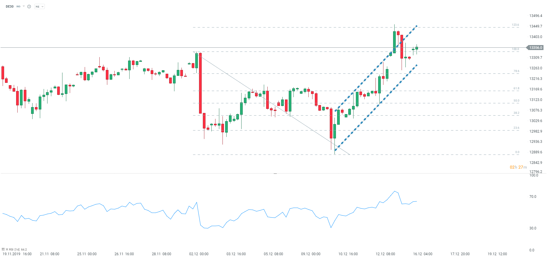 Dzisiejsze dane pokazują, że nie ma miejsca oczekiwane ożywienie w postaci nastrojów ze strony przedsiębiorców. Z drugiej strony są to dopiero indeksy wstępne, dlatego ostatnie wydarzenia w postaci wyborów w UK oraz umowa handlowa mogą mieć wpływ na ostateczne wyniki. DAX przy tym wszystkim pozostaje blisko ostatnich szczytów, znajdując się niecałe 100 punktów do nich.