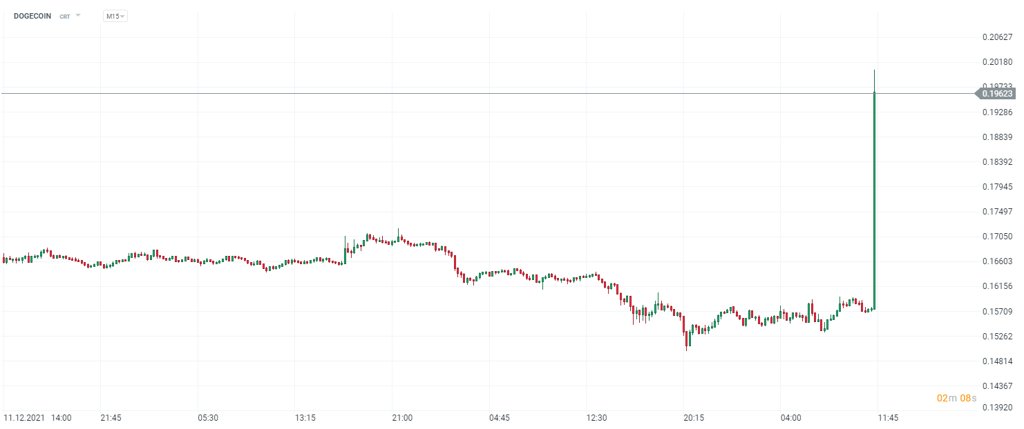 DOGECOIN rośnie obecnie o niemal 25%, po tym jak Elon Musk poinformował na Twitterze o możliwości kupna niektórych produktów Tesli za DOGECOINy. Nie jest to pierwszy raz, kiedy prezes Tesli w pozytywny sposób odnosi się do tego projektu.