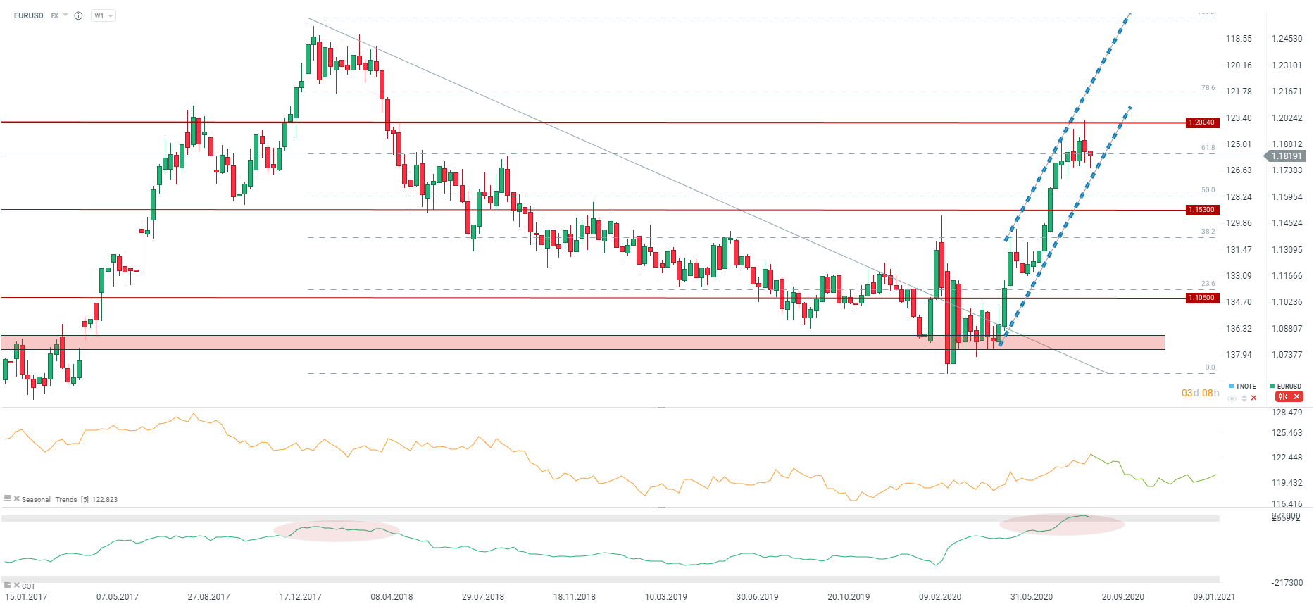 EURUSD niemal w pełni odrobił straty z tego tygodnia. Źródło: xStation5