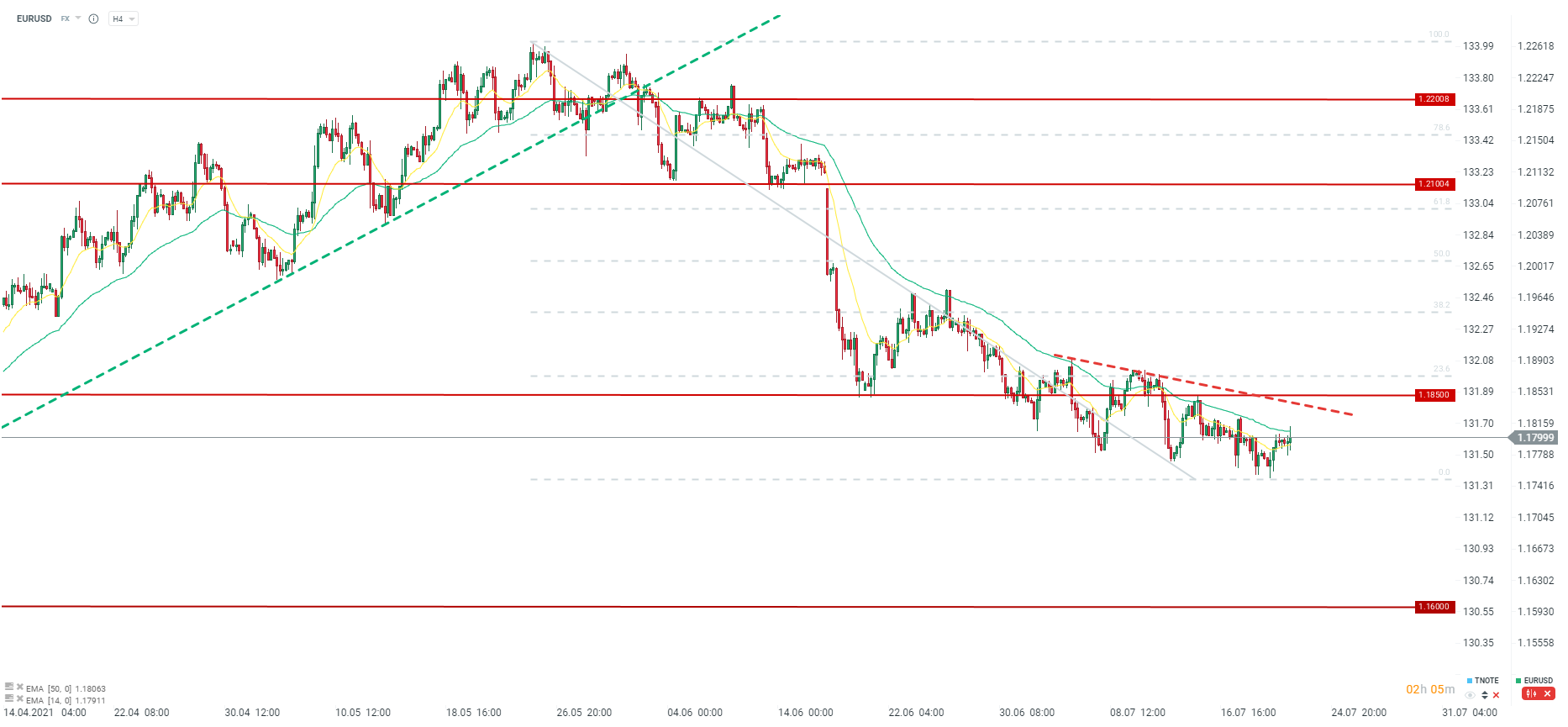 EURUSD próbuje odbijać, choć ciężko znaleźć powód takiego ruchu. Jest mocne wskazanie, że stopy procentowe pozostaną bez zmian do momentu, kiedy EBC uzna, że inflacja faktycznie wzrosła. Nie ma jednak wsparcia w postaci większego programu QE, oprócz potwierdzenia, że EBC będzie skupował aktywa w ramach programu PEPP szybciej niż na początku tego roku. Źródło: xStation5