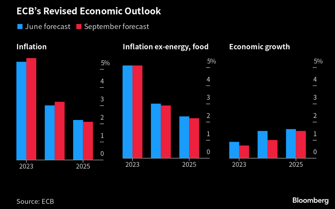 EBC widzi wzrost PKB w 2023 na poziomie 0,7%, wcześniej 0,9%. W 2024 r.: 2,9% vs. 3,0% oraz w 2025 r.: 1,5% vs. 1,6% poprzednio