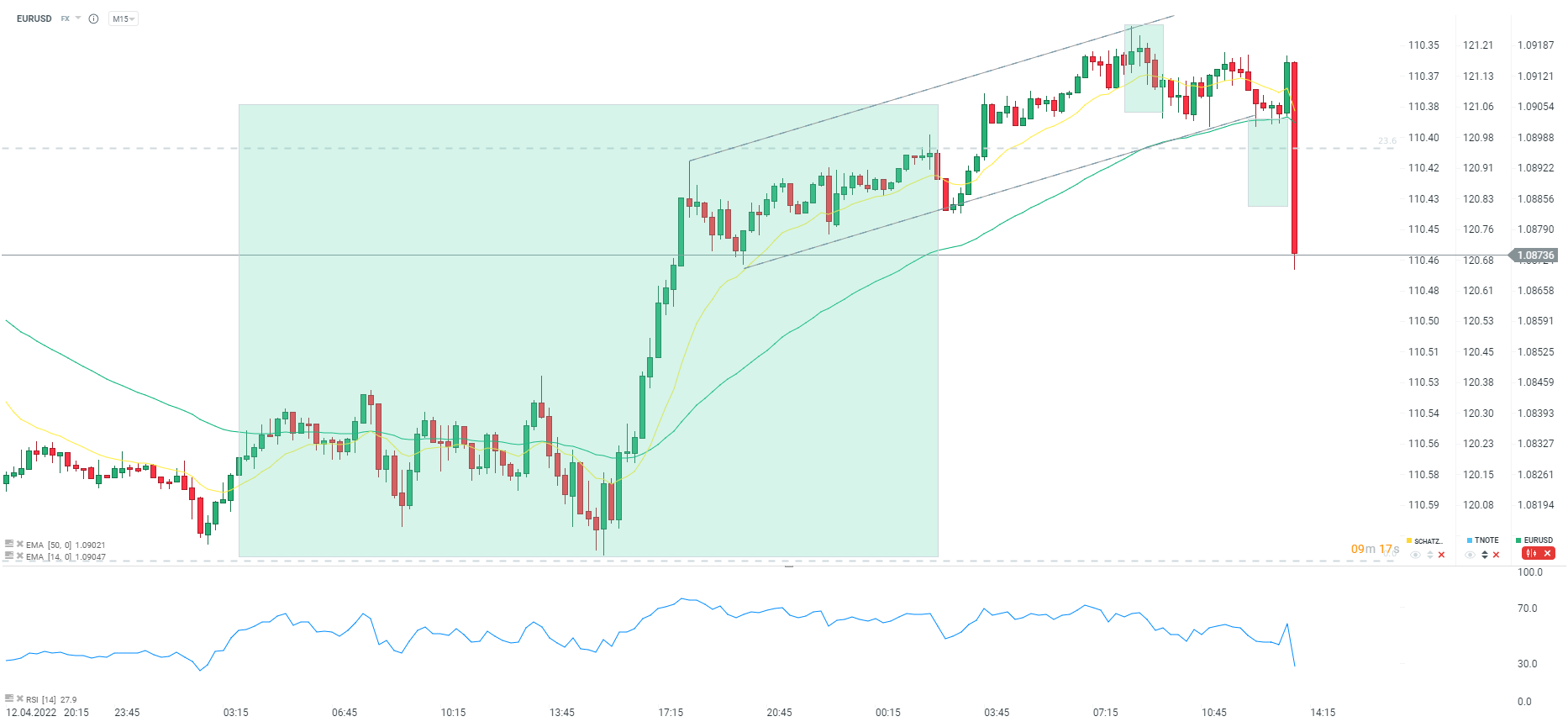 EBC wskazuje również, że QE zakończy się prawdopodobnie w Q3, a inflacja musi znajdować się powyżej 2% w horyzoncie prognozy, aby podnieść stopy. EBC informuje, że ma dostępne wszelkie środki i będzie analizować dane. EBC zamierza spełnić swój mandat.
