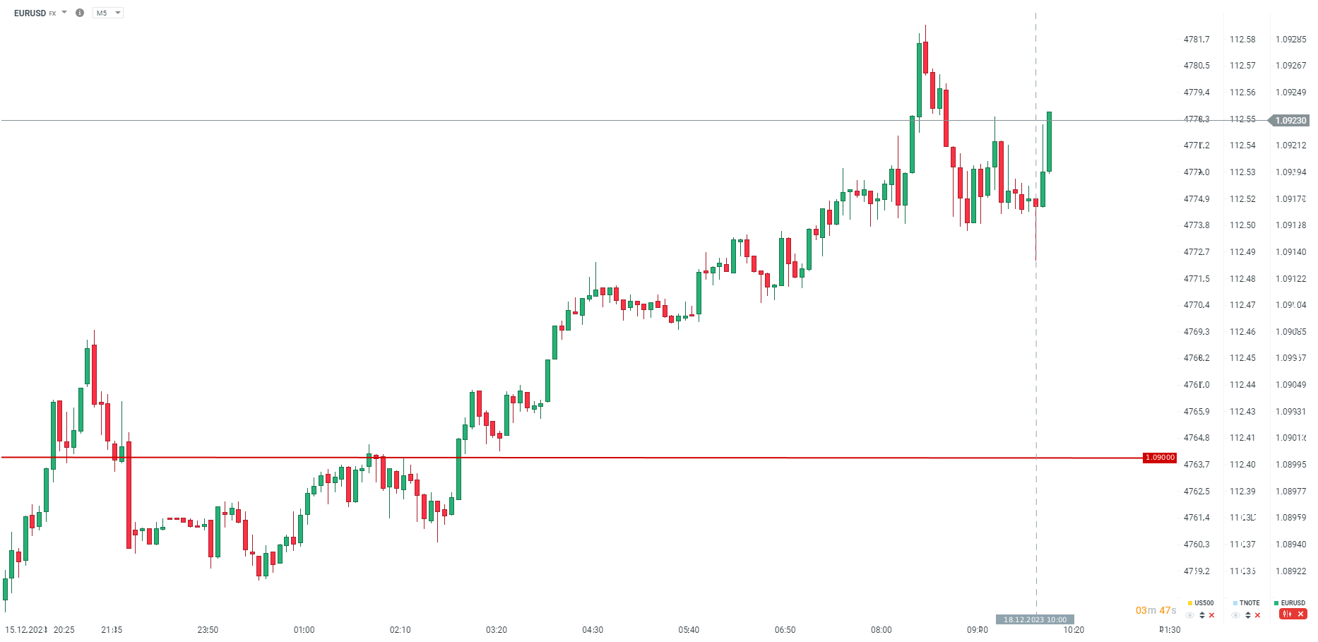 Euro straciło momentalnie po publikacji, ale jednocześnie na M5 wyznaczona została formacja młota przy wsparciu w okolicy poziomu 1,0916.
