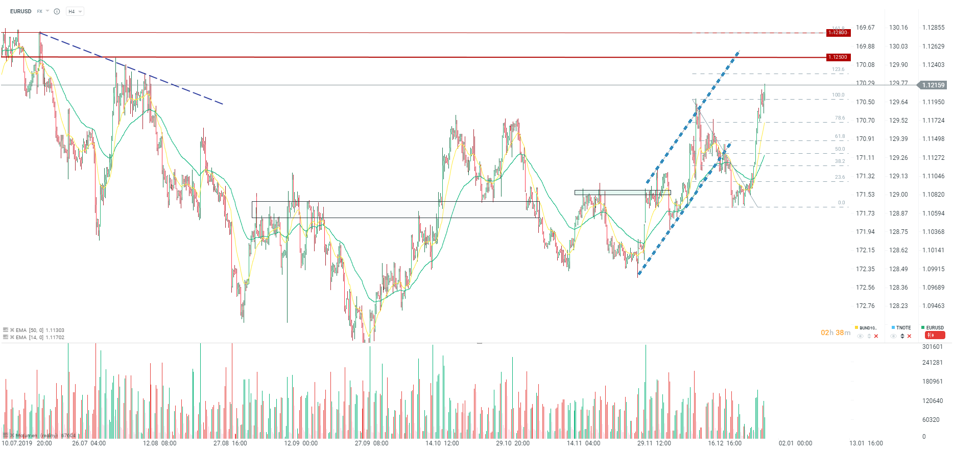 EURUSD najwyżej od 4 miesięcy. Kolejny ważny poziom oporu do 1,1250. Źródło: xStation5