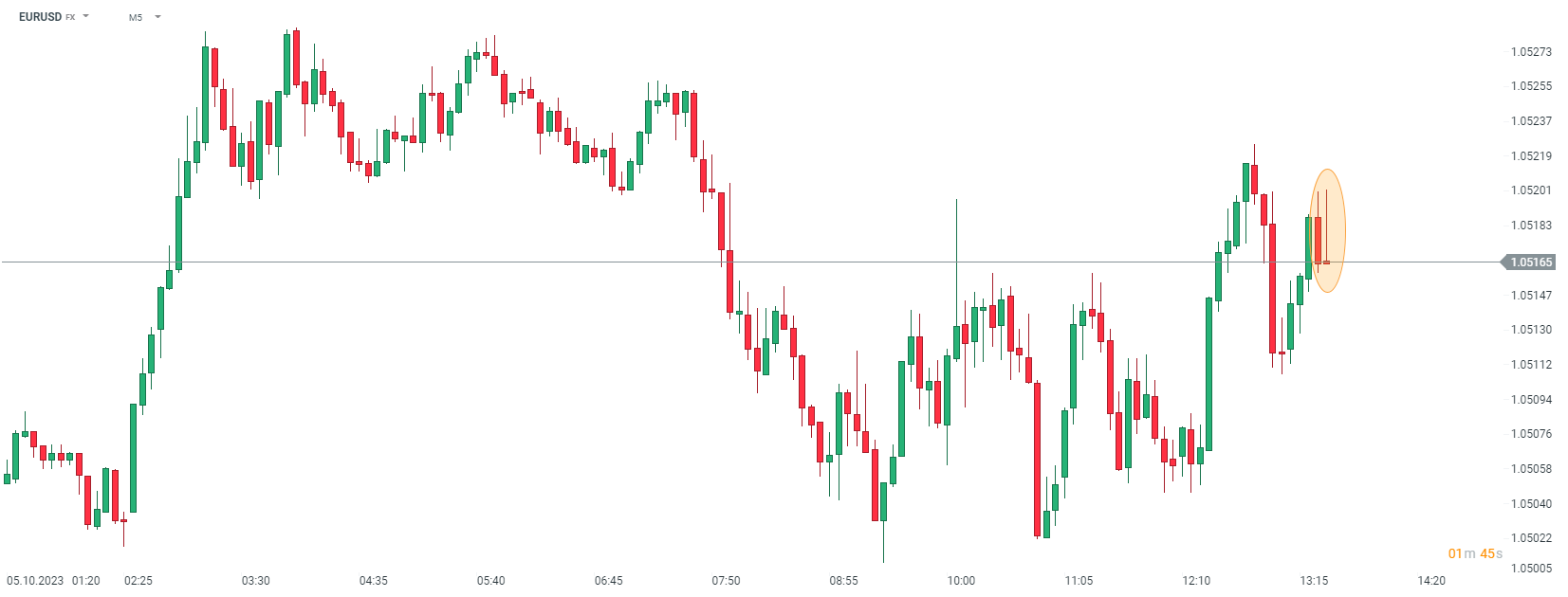 Para EURUSD nie zareagowała na odczyt danych. Źródło: xStation 5