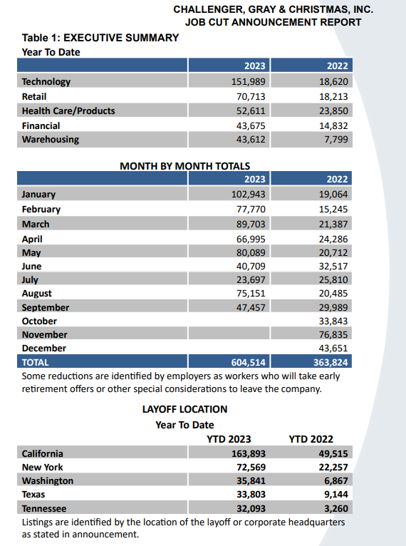 Szczegółowe dane podane przez agencję. Źródło: Challenger Grey